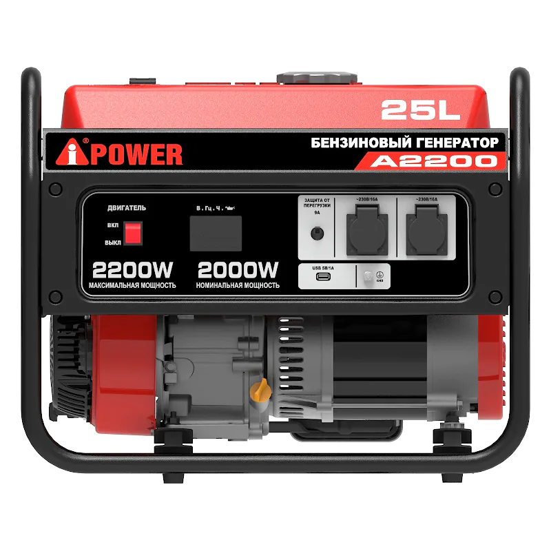 Бензиновый генератор A-iPower A2200 служит резервным однофазным источником питания для различных электроприборов, совокупная потребляемая мощность которых составляет 2 кВт. Помимо стандартных розеток устройство оснащено USB-разъемом. Благодаря вместительному топливному баку на 25 литров и экономному расходу топлива обеспечена продолжительная работа без дозаправки. Работает на четырехтактном бензиновом двигателе мощностью 7 л.с.