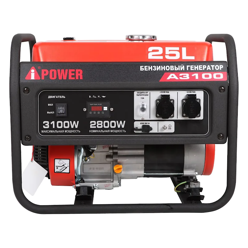 Бензиновый генератор A-iPower A3100 служит резервным однофазным источником питания для различных электроприборов, совокупная потребляемая мощность которых составляет 2,8 кВт. Помимо стандартных розеток устройство оснащено USB-разъемом. Благодаря вместительному топливному баку на 25 литров и экономному расходу топлива обеспечена продолжительная работа без дозаправки. Работает на четырехтактном бензиновом двигателе мощностью 7 л.с.