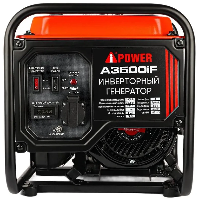 Инверторный бензиновый генератор A-iPower A3500iF - удачная модель из линейки инверторных генераторов, к которой можно подключить приборы суммарной мощностью 3,5 кВт.