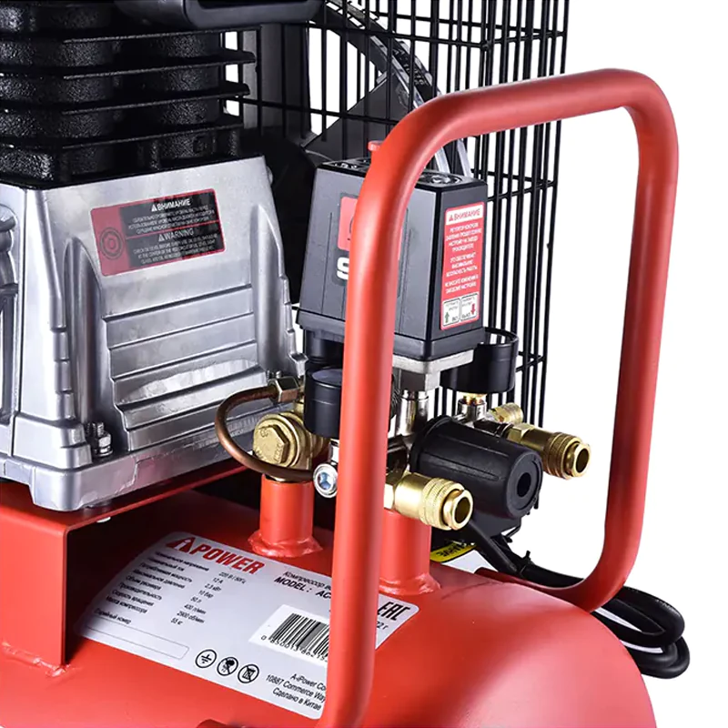 A-iPower AC400/50B оснащен электрическим двигателем мощностью 2,3 кВт, работает от стандартной сети 220 В. Рабочее давление 10 бар поддерживает в ресивере автоматически — при падении давления компрессор перезапускается и нагнетает воздух до заданных параметров.