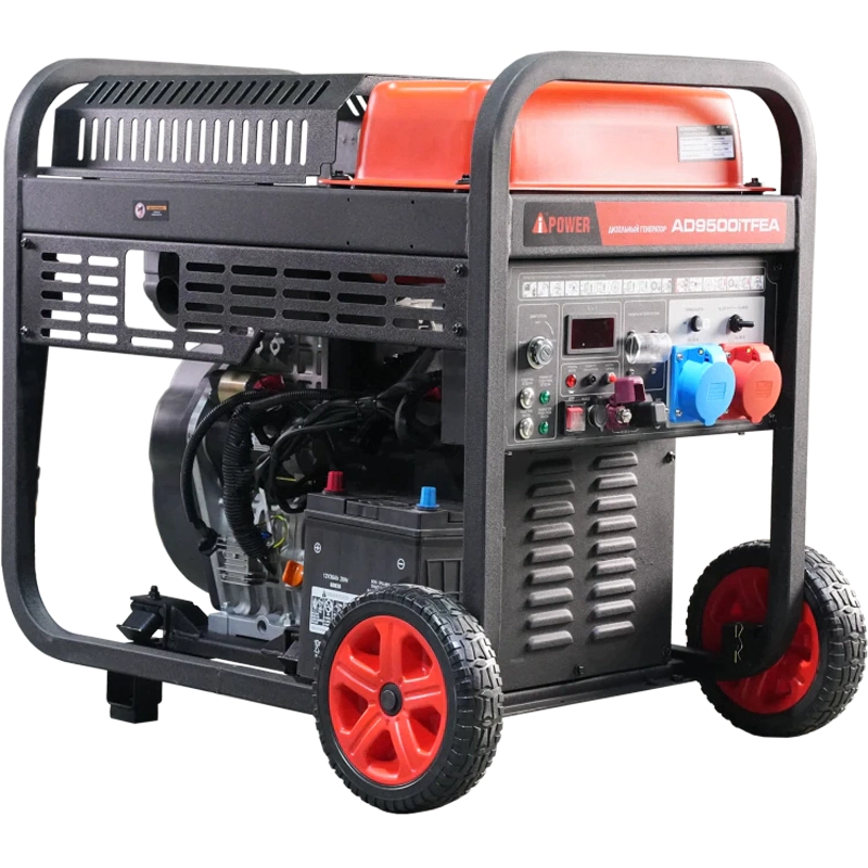Дизельный генератор AD9500iTFEA подходит как для резервного питания, так и для использования в строительстве. Инверторная технология преобразования напряжения позволяет получить идеальную синусоиду на выходе, а также сократить расход топлива. Дизельный генератор AD9500iTFEA имеет электрический стартер для запуска. Есть выход для подключения блока автоматики, генератор будет запускаться сам при отсутствии основной сети в доме.