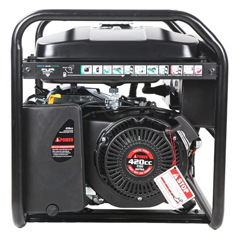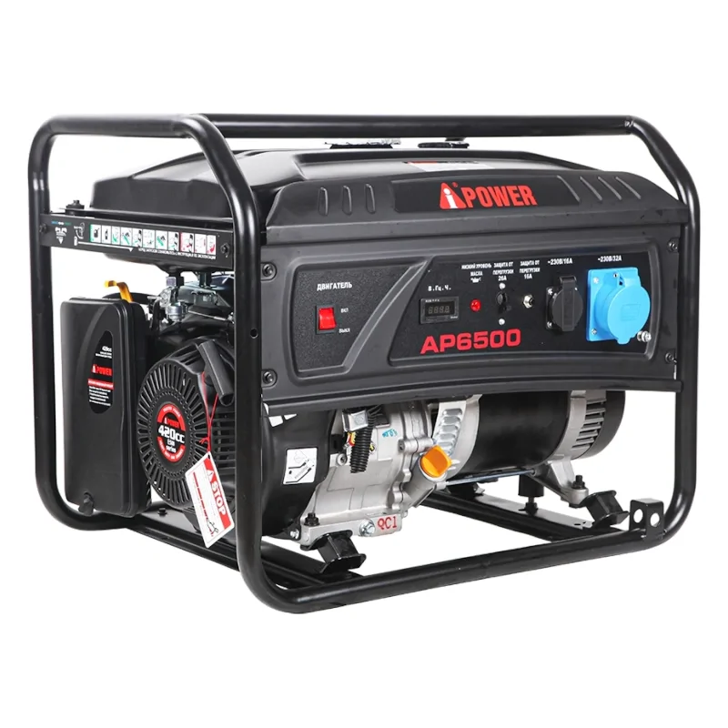 Бензиновый генератор A-iPower lite AР6500 обеспечивает автономное электроснабжение различных электрических устройств однофазным током. Допускается подключение бытовой техники, осветительных приборов и электроинструментов, совокупная потребляемая мощность которых составляет 6 кВт. Генератор смонтирован на прочной стальной раме, оснащен четырехтактным бензиновым двигателем мощностью 14 л.с. и топливным баком на 25 литров.
