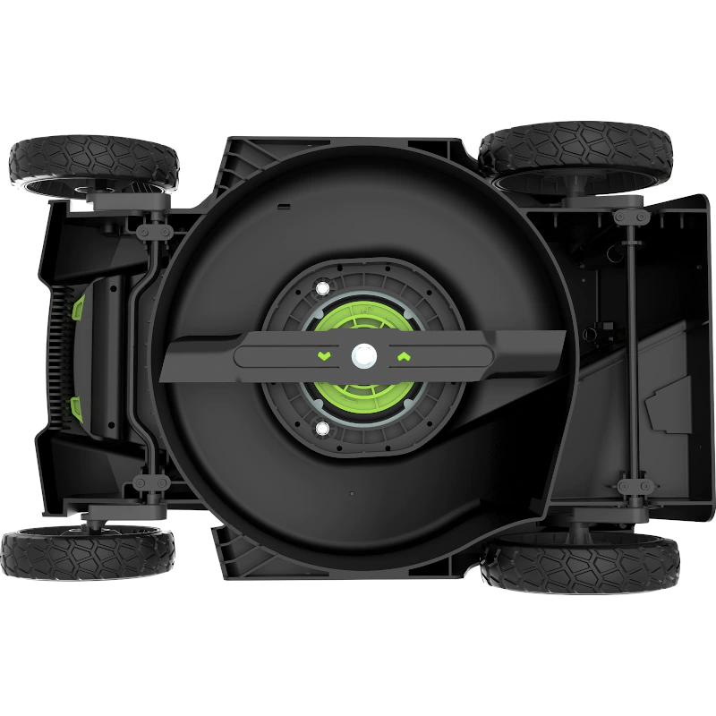 Диаметр передних колес составляет 15 см, задних — 18 см. За счет этого газонокосилка плавно катится даже по неровной поверхности. Эргономичная ручка имеет мягкое покрытие и два рычага запуска двигателя — под правую и левую руки. После работы рукоятку легко сложить вдоль корпуса — так газонокосилка Greenworks GD40LM361 займет меньше места при хранении и поместится в багажник автомобиля для транспортировки. Для работы подойдет любая батарея из линейки Greenworks 40V.