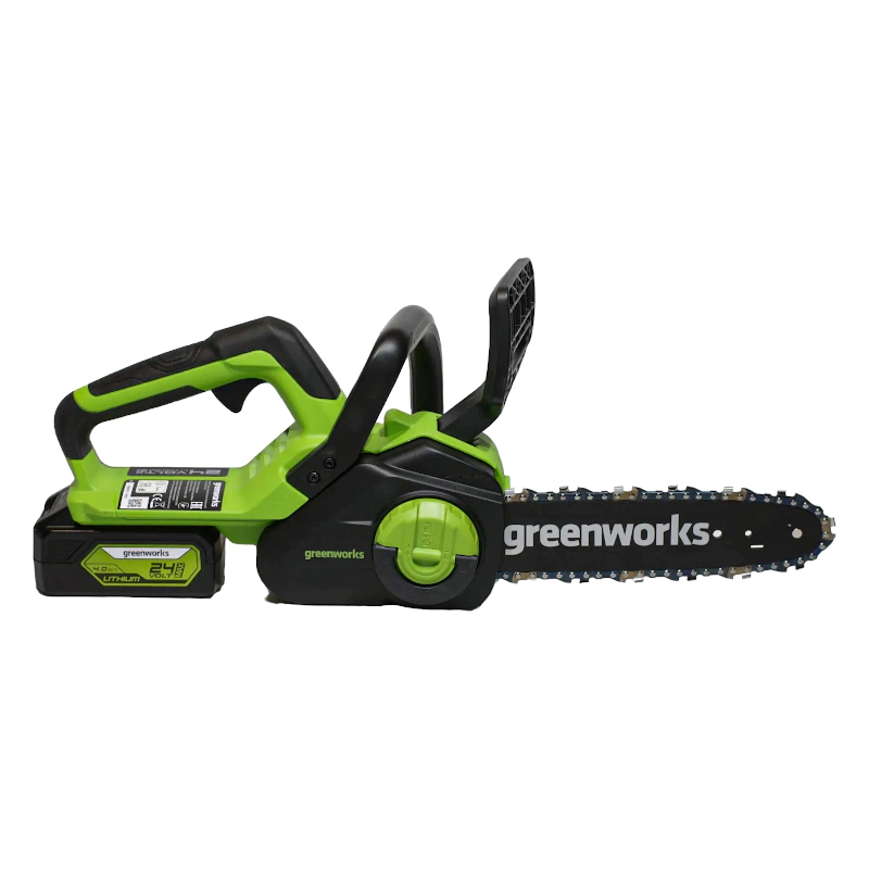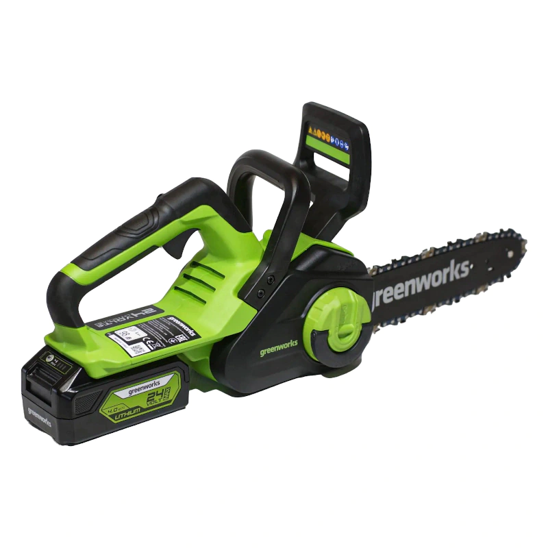 С беспроводным инструментом удобно работать в саду и других удаленных от розетки местах. Двигатель питается от Li-Ion аккумулятора. Данная модель пилы GreenWorks GD24CS30 поставляется без батарей. Это особенно выгодно для тех, у кого уже есть любой аккумуляторный инструмент GreenWorks из линейки 24V.