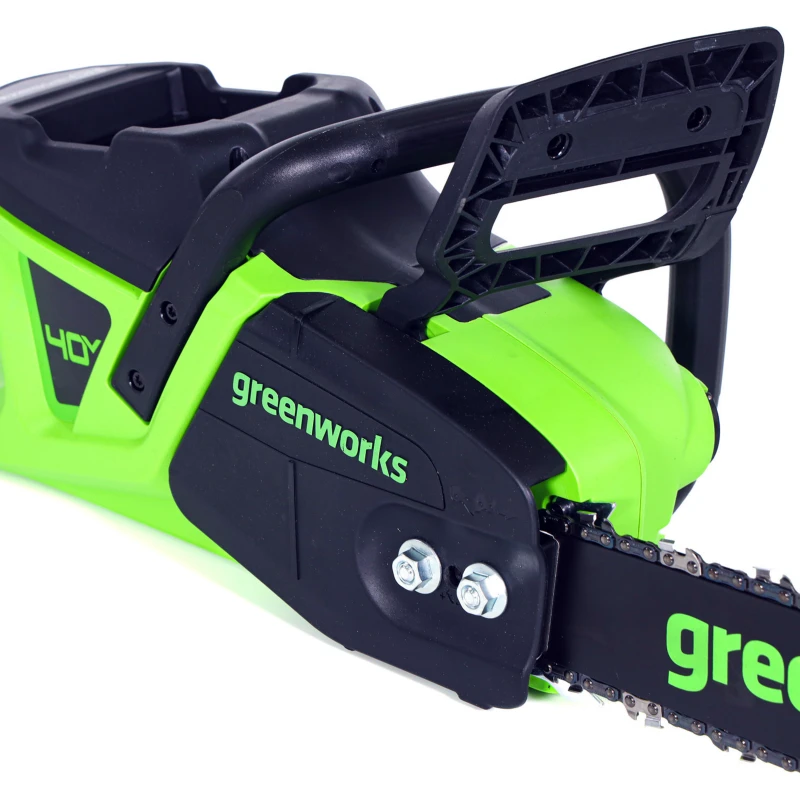 Конструкция цепной пилы Greenworks GD40CS20X оптимизирована для мощности и баланса. Поперечное расположение компактного двигателя с внешним ротором улучшает развесовку и снижает утомляемость. Прочная стальная шина устойчива к деформациям и продлевает срок службы инструмента. Встроенный масляный бачок на 180 мл обеспечивает длительную автономную работу. Механический тормоз цепи срабатывает при отдаче, мгновенно останавливая пилу для защиты оператора. Модель является частью экосистемы Greenworks 40V, где один аккумулятор совместим с более чем 50 единицами садовой техники, что делает инвестиции в инструмент выгодными.