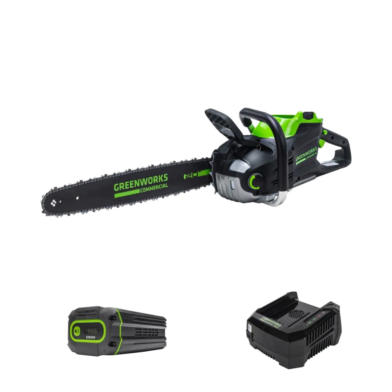 Цепная аккумуляторная пила Greenworks GC82CS51 бесщеточная из линейки техники 82V Commercial — профессиональная цепная пила, которая отлично работает с любой древесиной. Это новинка 2022 года и на сегодняшний день самая производительная пила в ассортименте Greenworks. Может использоваться для валки и распиловки высоких деревьев в профессиональных объемах и целях.
