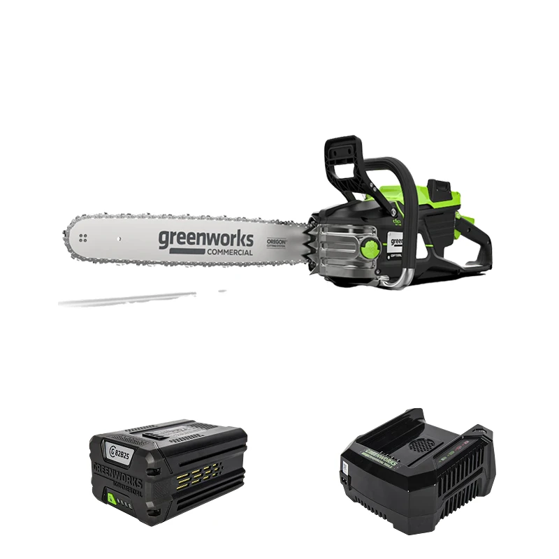 В комплект поставки также входят Аккумулятор Greenworks GC82B25 (82 В, 2 Ач) и Зарядное устройство Greenworks GC82C (82 В, 12.4 А)