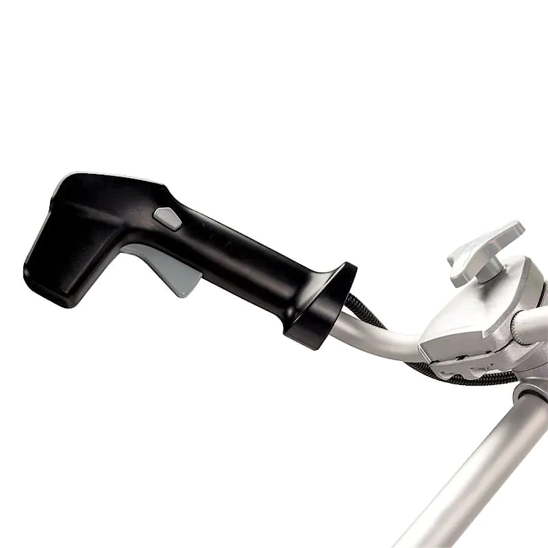 Аккумуляторный триммер для травы оснащен велосипедной рукояткой с накладками для удобного удерживания инструмента. Такая ручка позволяет широко размахиваться садовой косой для захвата максимальной площади кошения за один раз. Это удобно, если вам важна не аккуратность, а быстрая стрижка густых зарослей травы.
