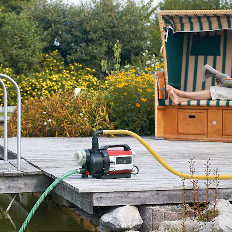 Поверхностный насос обладает функцией самовсасывания. Это означает, что он способен забирать воду из резервуаров глубиной до 8 м, например, для полива цветов на даче или использования садового душа. Максимально допустимая температура воды не превышает 35 °C.
