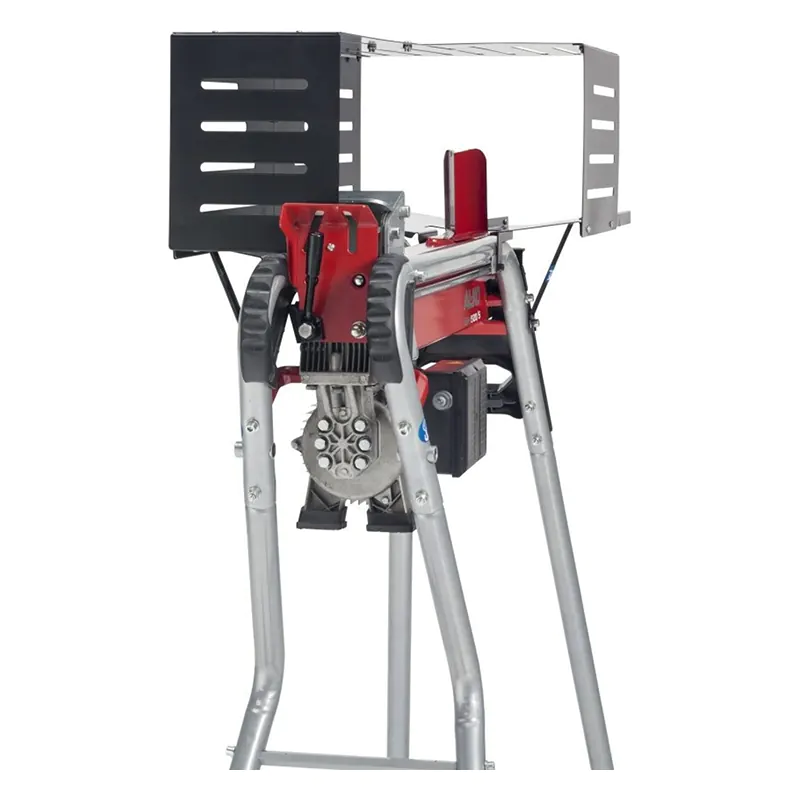 Дровокол AL-KO LSH 520/5 оборудован защитным выключателем, срабатывающим в случае перегрева двигателя. Толкатель имеет усиленную пластину с рифленой поверхностью, не допускающую соскальзывания полена и обеспечивающую плотное прижатие даже неровного среза. Защитный кожух предохраняет от разлетающихся древесных осколков. Конструкция из прочного металла с надежными резьбовыми соединениями рассчитана на высокие нагрузки и продолжительную эксплуатацию.
