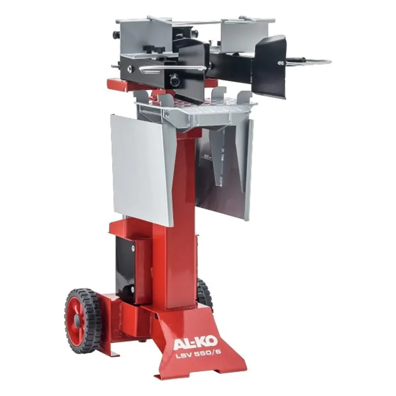 Вертикальный дровокол LSV 550/6 от AL-KO раскалывает дрова длиной до 103 см. Благодаря трехступенчатой регулировке стола дрова длиной 80 см максимально могут быть без проблем разрублены. Максимальная сила раскалывания, которую достигает дровокол, составляет 6 т. Благодаря прочной конструкции и использованию прочных материалов вес вертикального дровокола LSV 550/6 составляет примерно 97 кг. Вертикальный дровокол приводится в действие благодаря 230-вольтовому питанию от сети, а мощность двигателя достигает 2700 Вт. Высококачественный гидравлический насос обеспечивает максимальную производительность при максимальном давлении. Благодаря прочным широким шинам дровокол может легко транспортироваться даже на неровных поверхностях. Большая площадь основания обеспечивает прочную опору.