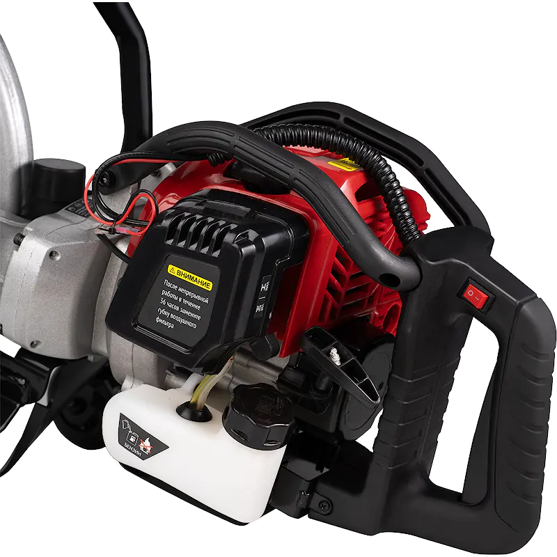 Бензорез работает с дисками диаметром 350 мм, обеспечивающими максимальную глубину реза 120 мм. Благодаря системе легкого запуска при вытягивании троса ручного стартера не нужно прикладывать излишних усилий. Чтобы холодный двигатель заводился без проблем при любой температуре окружающего воздуха, предусмотрен насос предварительной подкачки топлива в карбюратор.