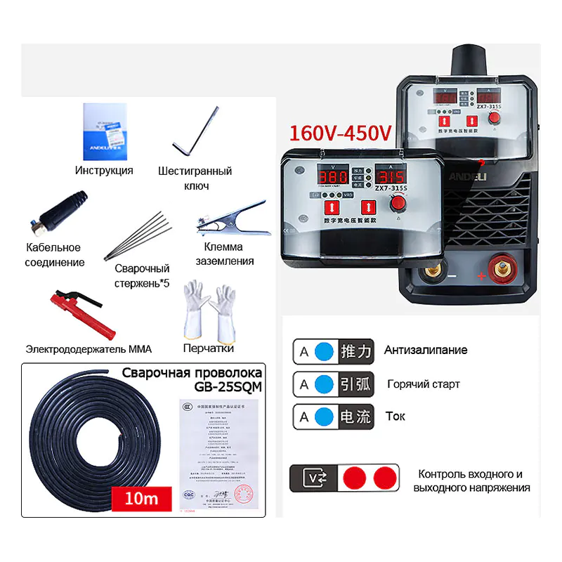 - Автоматический горячий пуск и технология предотвращения прилипания электрода.