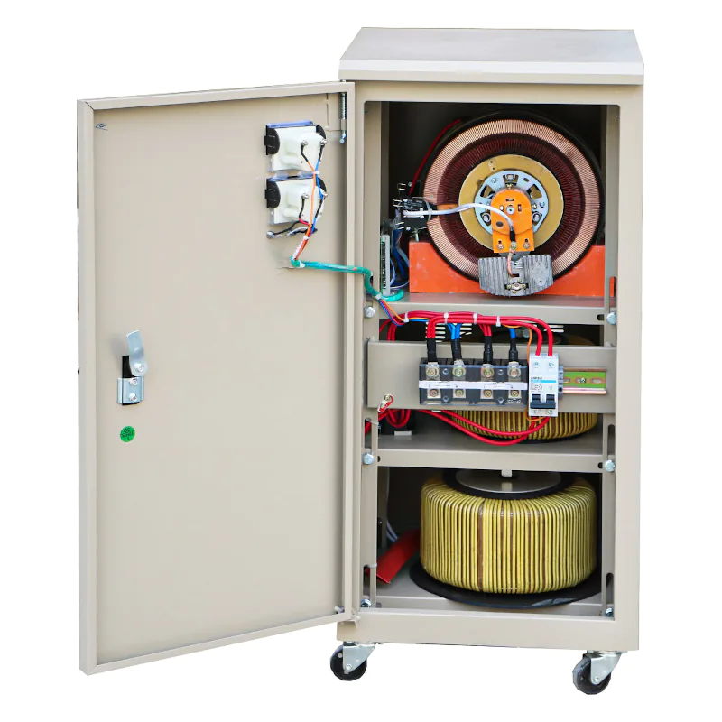 Коэффициент мощности устройства серии SVC составляет 80%. Стабилизация напряжения осуществляется при помощи электромеханического сервопривода, который гарантирует быстрый отклик, плавное выравнивание и высокую точность, составляющую ±3% от номинала.