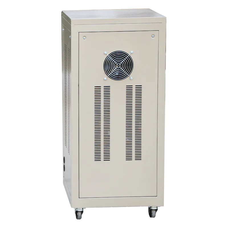 Стабилизатор напряжения Andeli из серии SVC можно устанавливать на стол, в тумбу или на пол. Прибор оснащен системой охлаждения, вольтметром, световыми индикаторами, сигнализирующими о состоянии и режимах стабилизации.