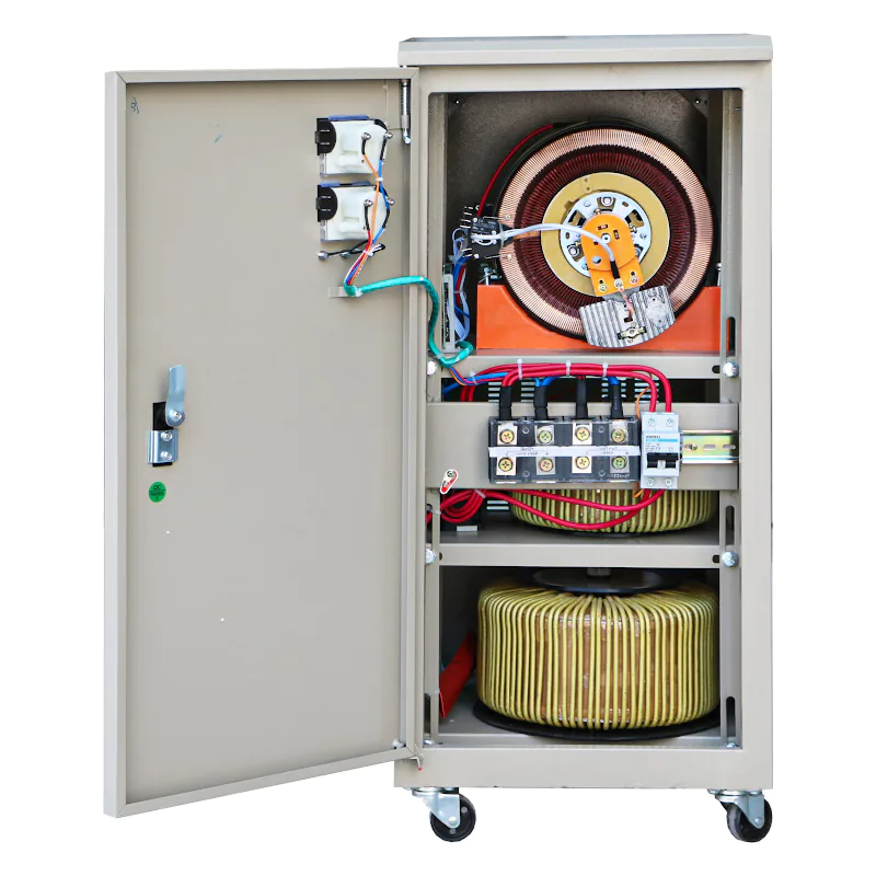 Коэффициент мощности устройства серии SVC составляет 80%. Стабилизация напряжения осуществляется при помощи электромеханического сервопривода, который гарантирует быстрый отклик, плавное выравнивание и высокую точность, составляющую ±3% от номинала.