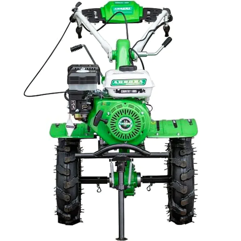 Бензиновый мотоблок Aurora COUNTRY 1005 предназначен для обработки почвы под посев и посадку овощных культур в подсобном хозяйстве. На вал отбора мощности и универсальную сцепку можно устанавливать активное и пассивное навесное оборудование. В комплект поставки входят комплекты острых саблевидных фрез, которые обеспечивают вспашку земли на глубину до 30 см. Ширину обработки можно изменять от 800 до 1050 мм. Мотоблок оснащен четырехтактным двигателем с воздушным охлаждением мощностью 9 л.с.