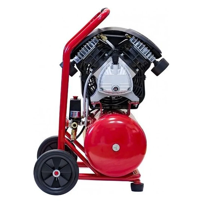 Масляный компрессор с прямым приводом работает от однофазной электросети 230 В. Двухцилиндровая поршневая модель оснащена двигателем мощностью 2200 Вт, который стабильно поддерживает 2850 об/мин во всем рабочем диапазоне давления. Для повышения эффективности диаметр каждого цилиндра увеличен до 48 мм. Головка имеет V-образную форму.