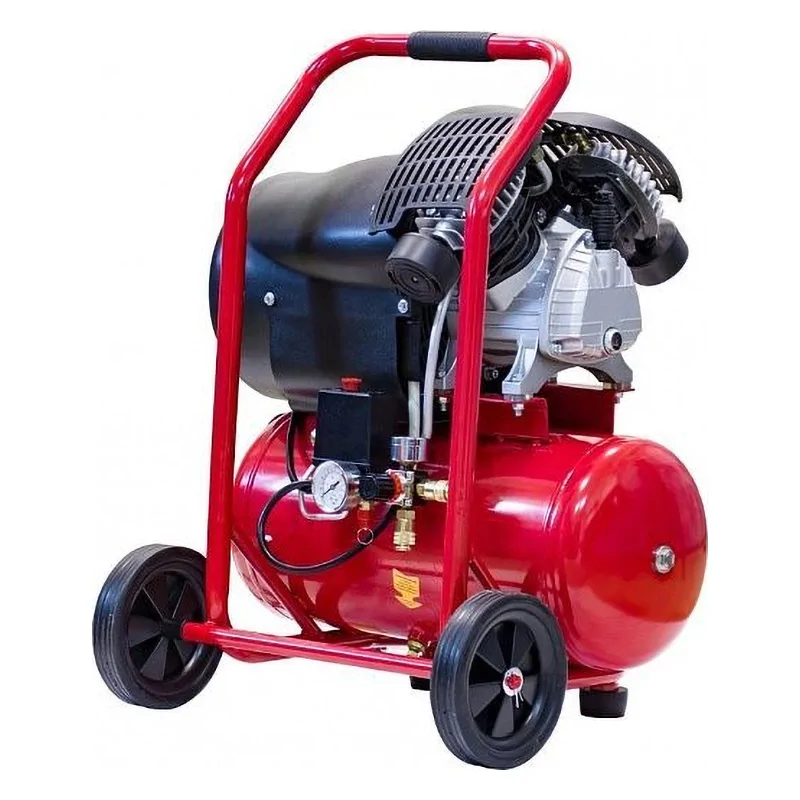 Устройство тепловой защиты отключает двигатель в случае перегрузки. Прочный и надежный ресивер объемом 24 л изготовлен из стали толщиной 2,5 мм на роботизированной сварочной линии, имеет два ревизионных отверстия и клапан для слива конденсата.