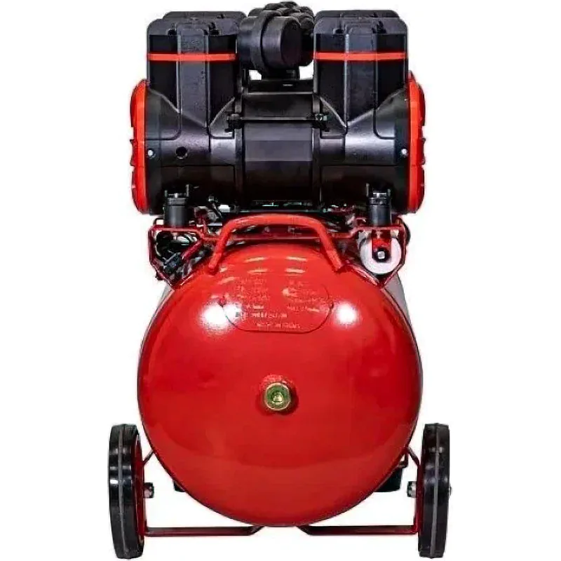Безмасляный компрессор оснащен регулятором, позволяющим корректировать давление сжатого воздуха в сторону уменьшения или увеличения на выходе. Устройство работает в автоматическом режиме. Манометры помогают отслеживать значения в системе. Быстросъемные соединения позволяют легко подключать пневмоинструмент. Предохранительный клапан обеспечивает сброс давления в экстренном случае, предотвращая поломку подключенного пневматического оборудования.