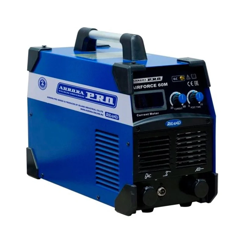 Инверторный трехфазный аппарат AuroraPRO AIRFORCE 60M предназначен для плазменной резки любых токопроводящих материалов: мягкие стали, нержавеющие стали, оцинкованные стали, алюминий, медь и различные сплавы. Работа с данным аппаратом отличается высоким качеством и высокой скоростью резки. Поджиг дуги с высокочастотным управлением значительно упрощает работу. При режущем токе 60А, аппарат способен справляться с углеродистой сталью толщиной до 20мм. А при толщинах 15 мм, АИРФОРС 60 уверенно чувствует себя даже на продолжительных работах не теряя в качестве резки. К аппарату необходимо также подключить компрессор для подачи сжатого воздуха.