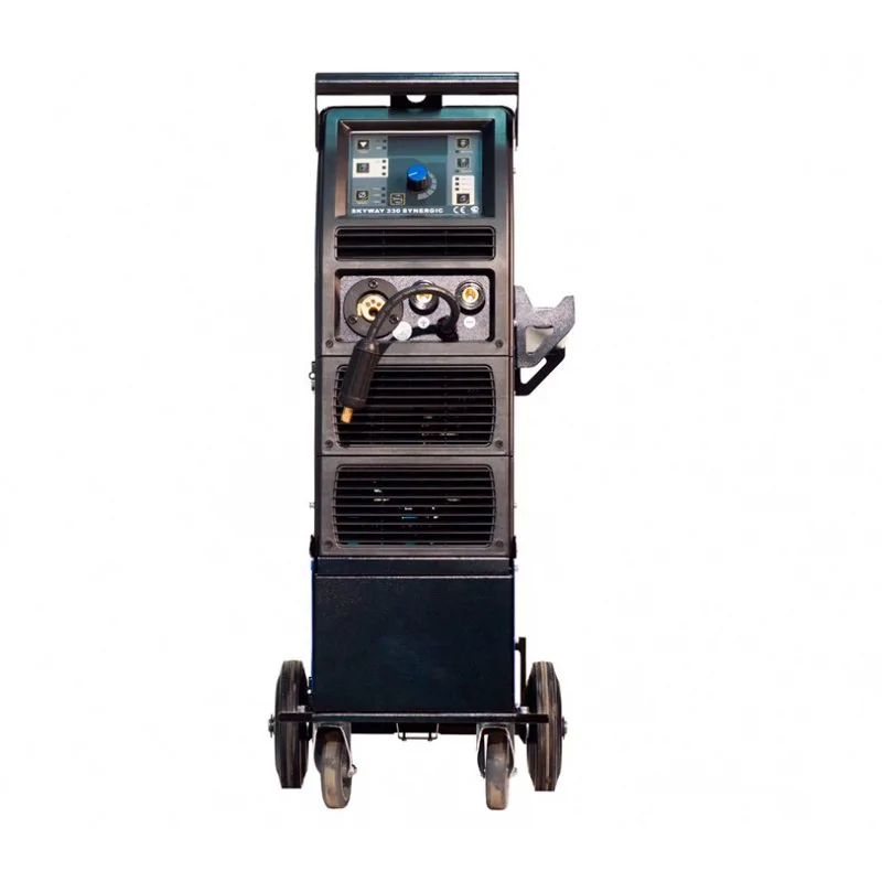 SKYWAY 330 – 3-х фазный синергетический инвертор для полуавтоматической сварки стальной проволокой в среде инертного/активного защитного газа MIG-MAG, а также для ручной дуговой сварки штучным электродом MMA.Аппарат выполнен в едином корпусе со встроенным подающим механизмом, рассчитанным для использования катушек D300 (до 20кг). Тележка с подставкой под баллон, отсек для хранения сварочных принадлежностей и инструмента, высокая компоновка аппарата - все эти моменты существенно облегчают работу сварщика. SKYWAY – это передовая технология инверторного блока IGBT, отличные сварочные характеристики и превосходная эргономика управления. Регулировка сварочных параметров при помощи «одной кнопки» позволяет настроить полуавтомат для выполнения широкого спектра сварочных работ на высшем уровне.