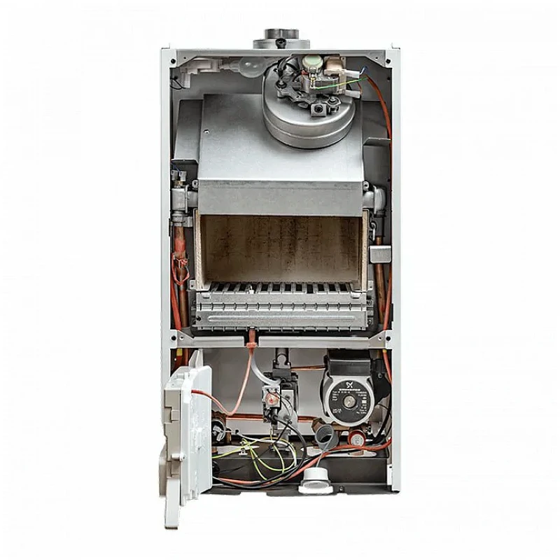 Камера сгорания закрытого типа с принудительным отводом отработанных газов позволяет устанавливать оборудование в жилых помещениях. При отсутствии воды или недостаточном давлении в системе котел автоматически отключается. Датчики контроля пламени и температуры обеспечивают безопасность эксплуатации котла Baxi ECO FOUR 1.14 F. Когда температура поступающей воды опускается ниже 5⁰С, автоматически включается горелка для подогрева до 30⁰С в системе подачи.
