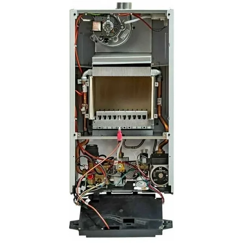 Продукты горения принудительно выводятся через двухтрубный дымоход из закрытой камеры сгорания. При отсутствии воды или недостаточном давлении в системе аппарат автоматически отключается. Датчики тяги, давления и пламени в совокупности с системами защиты от перегрева и замерзания обеспечивают безопасность эксплуатации котла Baxi ECO Nova 1.24F.