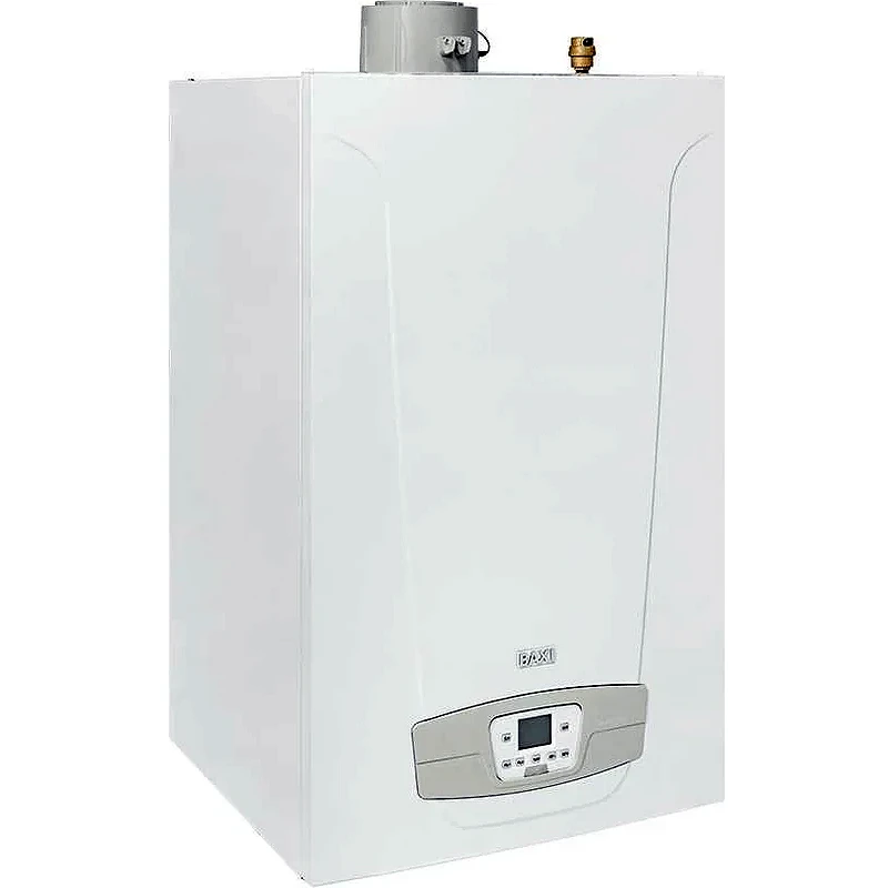 Газовый настенный котел Baxi DUO-TEC MP+ 1.99 с полезной тепловой мощностью 92,4 кВт предназначен для одиночной или каскадной установки, объединяющей до 16 устройств. Модель имеет один контур отопления. Через встроенный 3-ходовой клапан можно подключить дополнительный бойлер для горячего водоснабжения. Отходы горения удаляются через камеру закрытого типа. Оборудование работает на магистральном или сжиженном газе. Для функционирования электроники подключается к бытовой электросети. Системы защиты от замерзания, перегрева, отсутствия тяги, пламени, воды и заклинивания насоса обеспечивают безопасность эксплуатации.