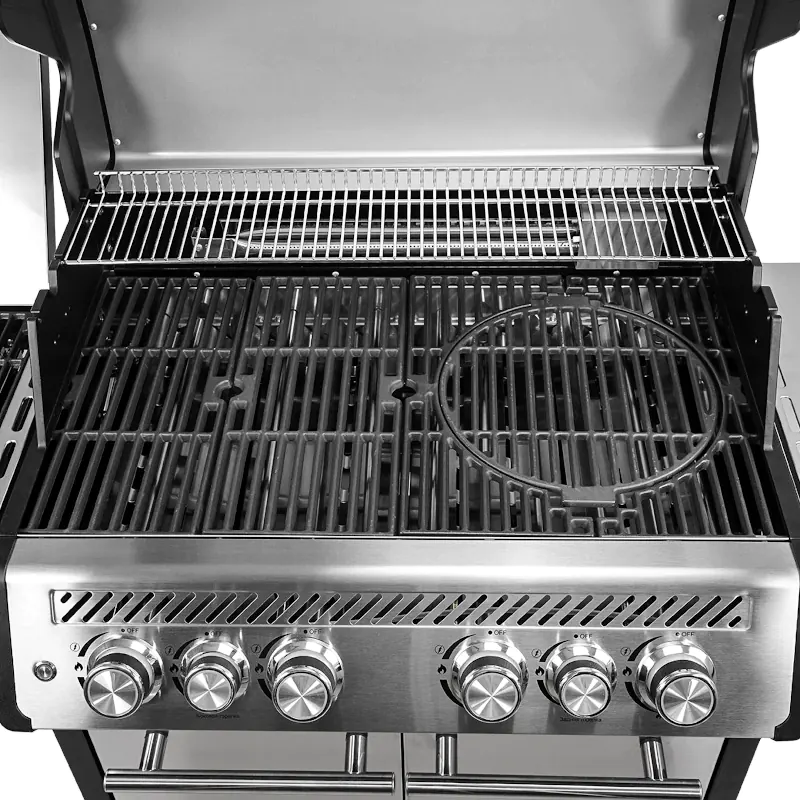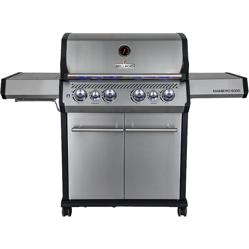 Новинка от бренда «BELLAGIO»– газовый гриль Maniero 6000 с 5 основными конфорками, инфракрасной горелкой и дополнительной боковой конфоркой – отличный выбор для приготовления самых сочных, аппетитных и ароматных блюд на большую компанию. Газовый гриль Maniero 6000 приятно удивит вас надежной работой, производительностью, брутальным дизайном и превосходным нагревом, в сочетании с комфортной и простой эксплуатацией. В этом гриле есть все, чтобы готовить вкусно и много, а инфракрасная горелка сохранит сочность ваших продуктов и придаст красивую, ароматную корочку.