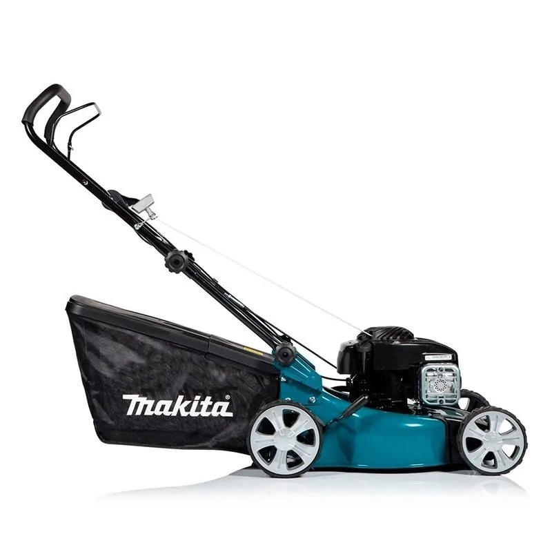 Складная рукоятка позволяет компактно хранить самоходную бензогазонокосилку Makita PLM4120N в небольшом гараже. В сложенном состоянии модель также удобно перевозить в багажнике автомобиля.