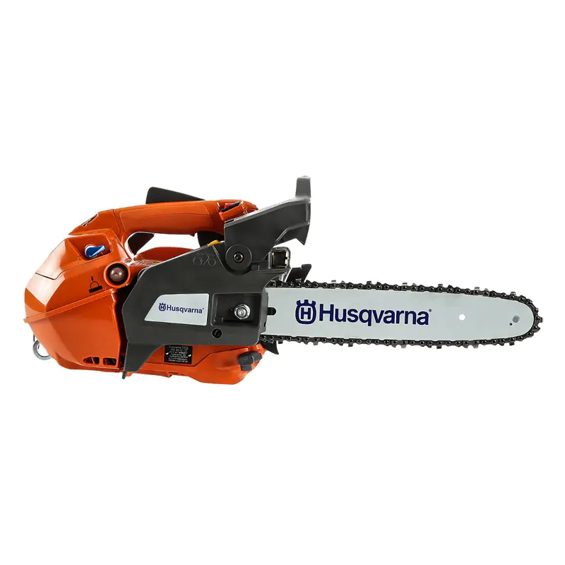 В конструкции бензиновой пилы Husqvarna T435 предусмотрено несколько решений, уменьшающих риск травмироваться. Цепной тормоз моментально срабатывает при отдаче за счет сил инерции. Его также можно включать вручную, сдвинув вперед рукоятку охраны, которая дополнительно защищает левую ладонь от контакта с режущей частью.