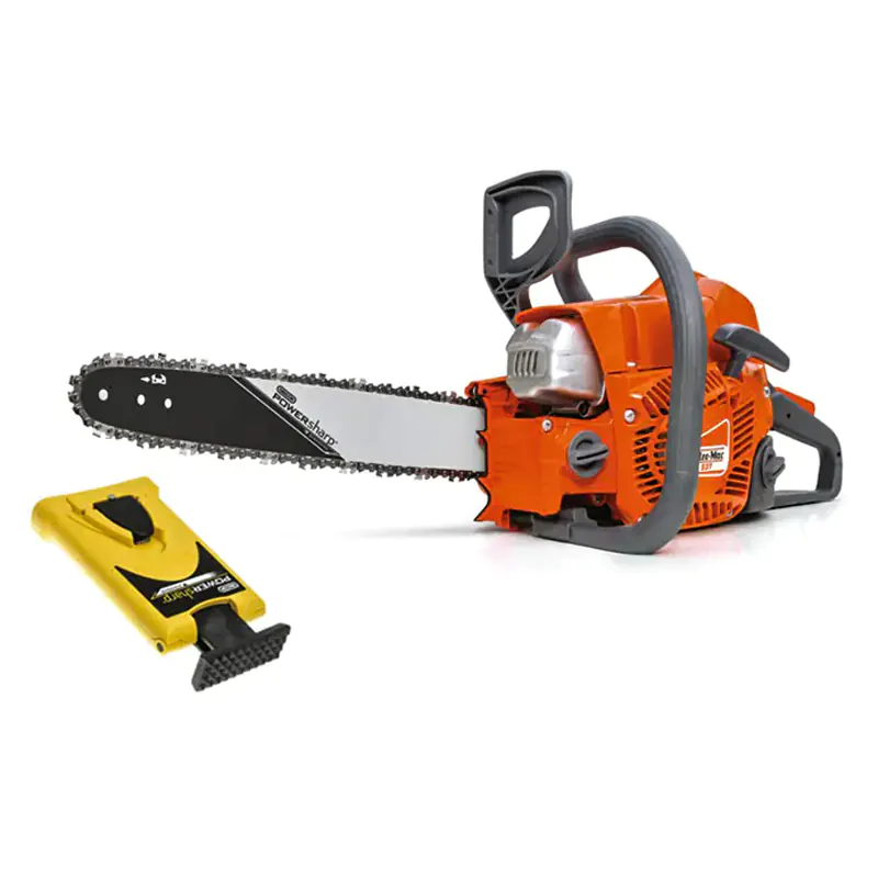 Бензопила Oleo-Mac 937 предназначена для использования как в домашних условиях во время ремонта, так и на строительных площадках. В комплекте данной модели идет уникальное устройство Power Sharp для заточки цепи без ее демонтажа. Вам необходимо установить данный прибор на пильную шину, упереть инструмент в твердую поверхность, например, в бревно, разогнать его до максимальных оборотов и подождать около 5 с.