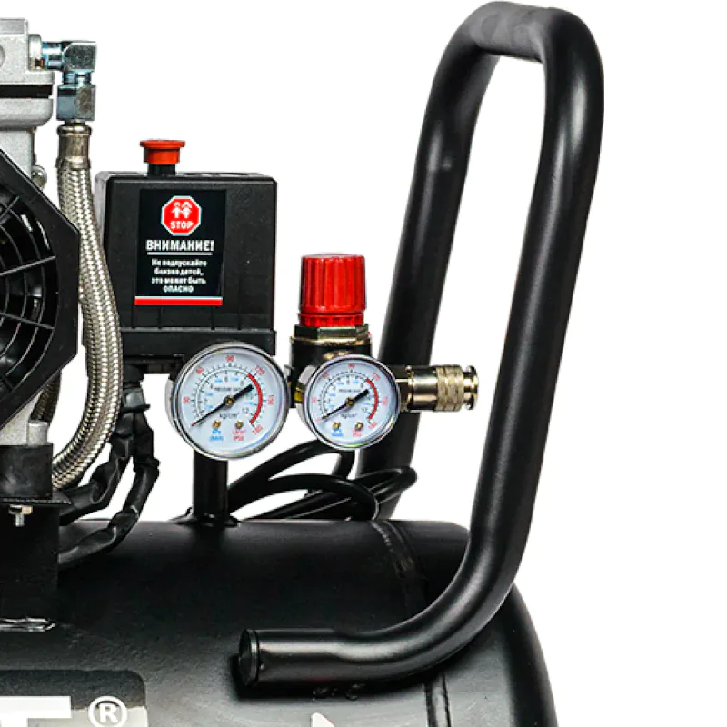 Модель вырабатывает чистый сжатый воздух, не требует дополнительных фильтров - это уменьшает расходы на обслуживание устройства. Допускается запуск при низких температурах.