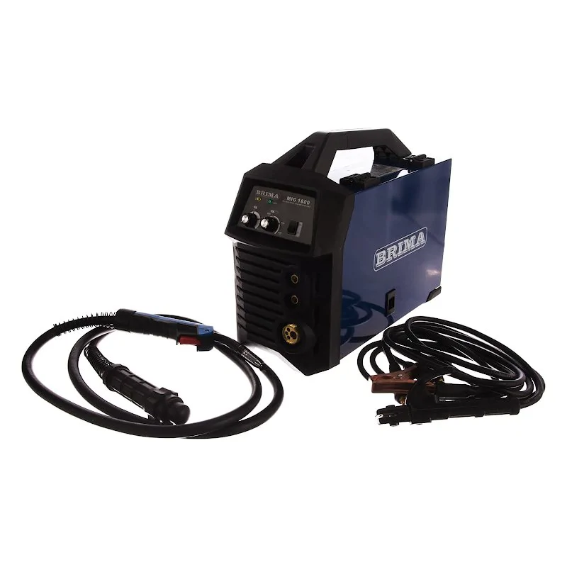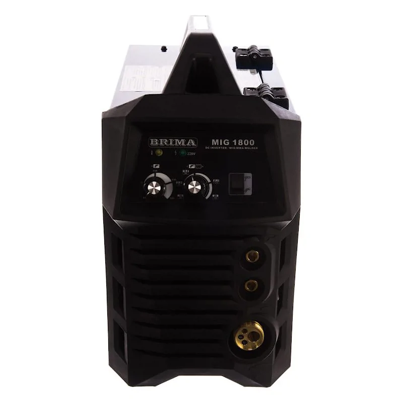 Сварочный полуавтомат BRIMA MIG-1800 – промышленный инверторный аппарат для варки MIG-MAG в среде защитных газов. Ток плавно настраивается вручную при помощи регулятора до максимального значения в 180 А.