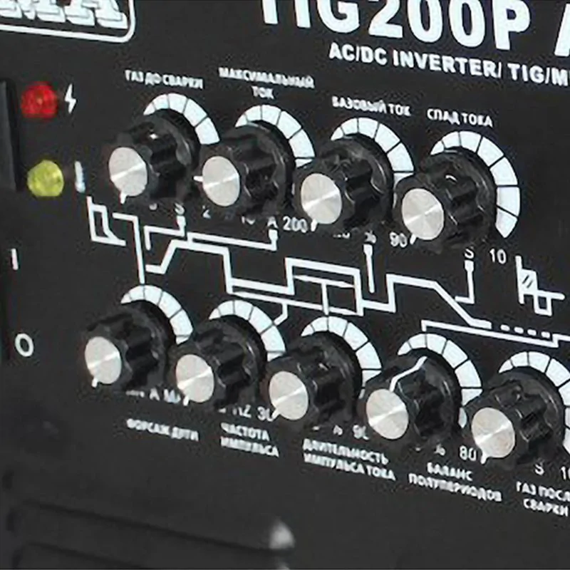 На панели управления инвертора расположено множество регуляторов. С помощью них настраиваются все необходимые для работы параметры: ток, сила сварочной дуги, время действия импульсного режима, продолжительность спада тока и т.д. Например, вы можете выбрать режим работы для наиболее эффективной работы с определенным материалом: