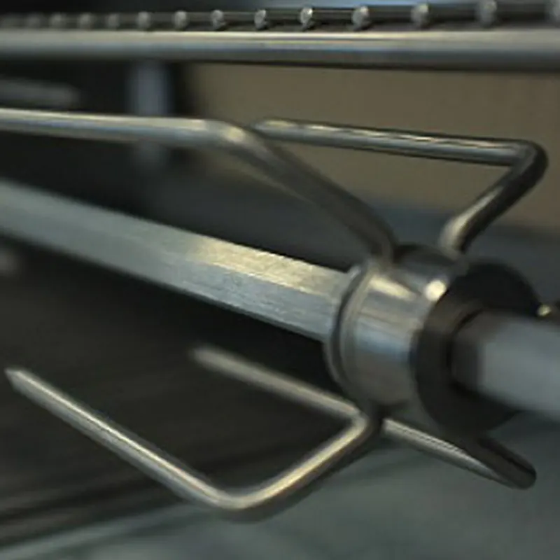 - Вертел с электроприводом и мотором из нержавеющей стали. Для подключения требуется розетка 220В, подключенная через устройство защитного отключения (УЗО)