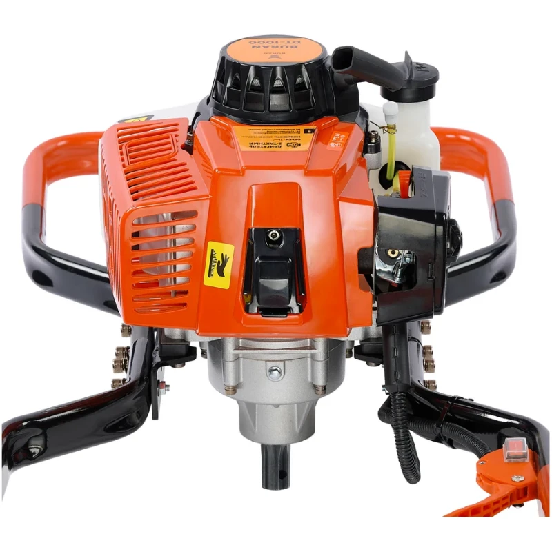 Профессиональный мотобур BURAN DT-1000 с мощностью 3.39 л.с. предназначен для выполнения сложных задач в строительстве и сельском хозяйстве. Обладает двухтактным двигателем с увеличенным запасом срока службы. Сбалансированное сочетание надёжности и мощности позволяет с комфортом работать двум операторам. Важным преимуществом является мощность бура 3.39 л.с. (2500 Вт) при объёме двигателя 71 см3, это позволяет эффективно использовать шнек диаметром 250мм.