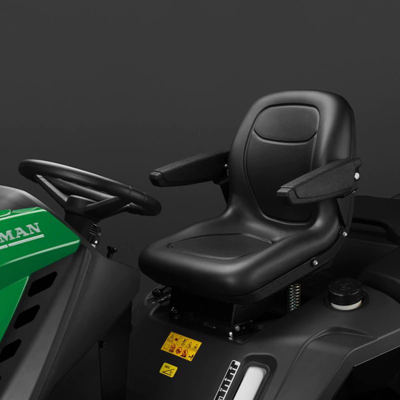 Если оператор встает с сиденья, то двигатель и дека моментально останавливаются в целях безопасности.
