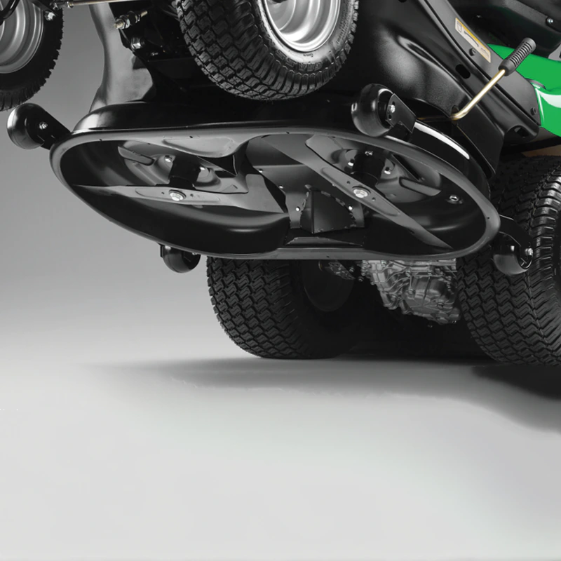 Колеса и режущая дека с плавающей подвеской во время работы повторяют все неровности рельефа, обеспечивая аккуратный результат даже на сложном ландшафте.