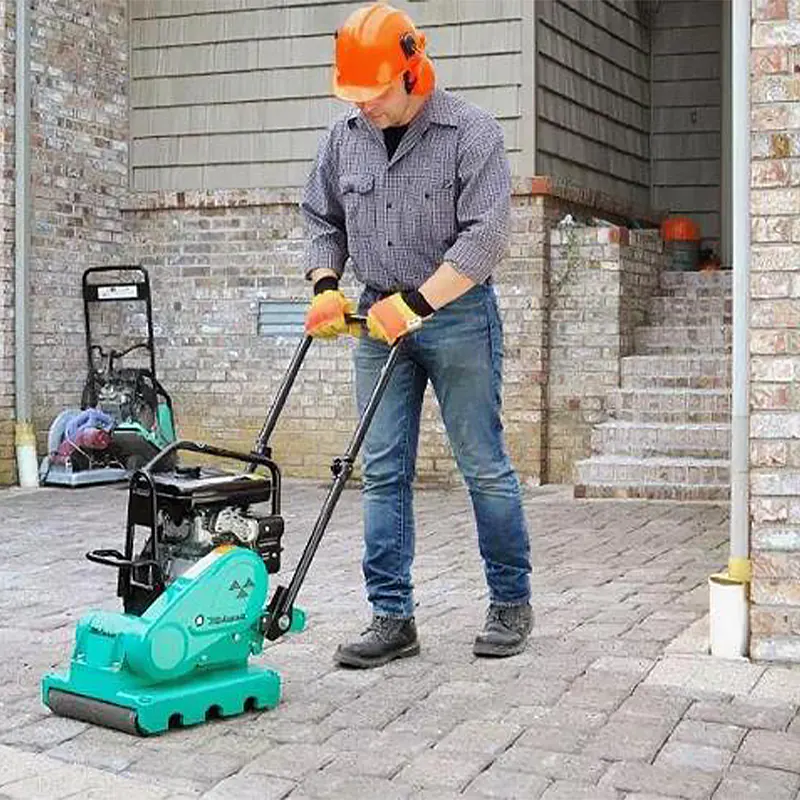 Рабочая поверхность – четыре резиновых ролика. Эффективно уплотняют тротуарную плитку, не повреждая ее.
