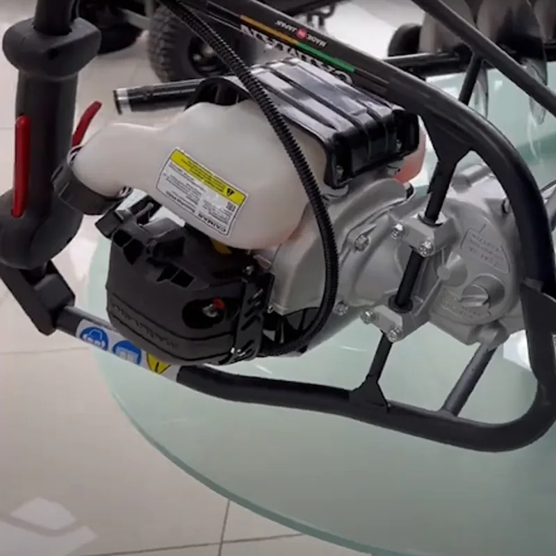 Благодаря системе легкого старта не нужно прикладывать излишних усилий при вытягивании шнура стартера. Помпа для предварительной подкачки топлива в карбюратор облегчает запуск холодного двигателя. Жесткая металлическая рама защищает двигатель и редуктор от повреждений. Мотобур можно без опасений класть на землю. Уровень топлива удобно отслеживать сквозь полупрозрачные стенки бака.