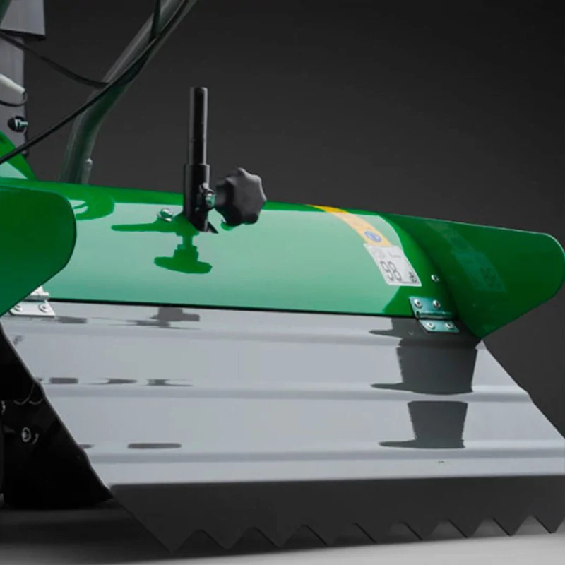 Передний бампер защищает машину в случае столкновения с препятствиями. Вращающаяся фреза полностью закрыта со всех сторон металлическим кожухом. Он оберегает вас и расположенные рядом садовые растения от контакта с остро заточенными лезвиями. Двигатель стабильно работает даже при большой тряске на неровном грунте.