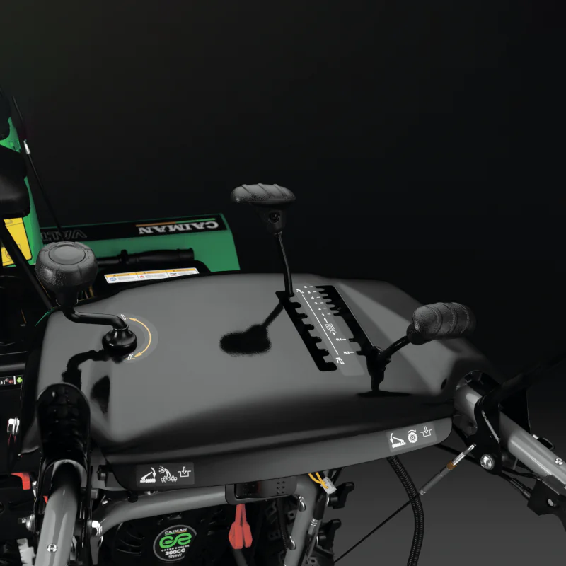Все элементы для управления снегоуборщиком Caiman Valto 30CVE расположены на одной панели. Они находятся в зоне быстрого доступа. Вы можете управлять машиной при помощи одной руки. Второй свободной рукой удобно задавать скорость движения или настраивать поворот выброса снега.