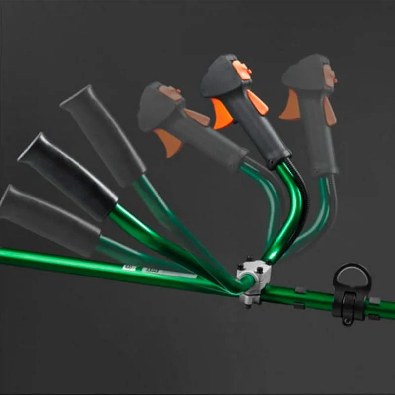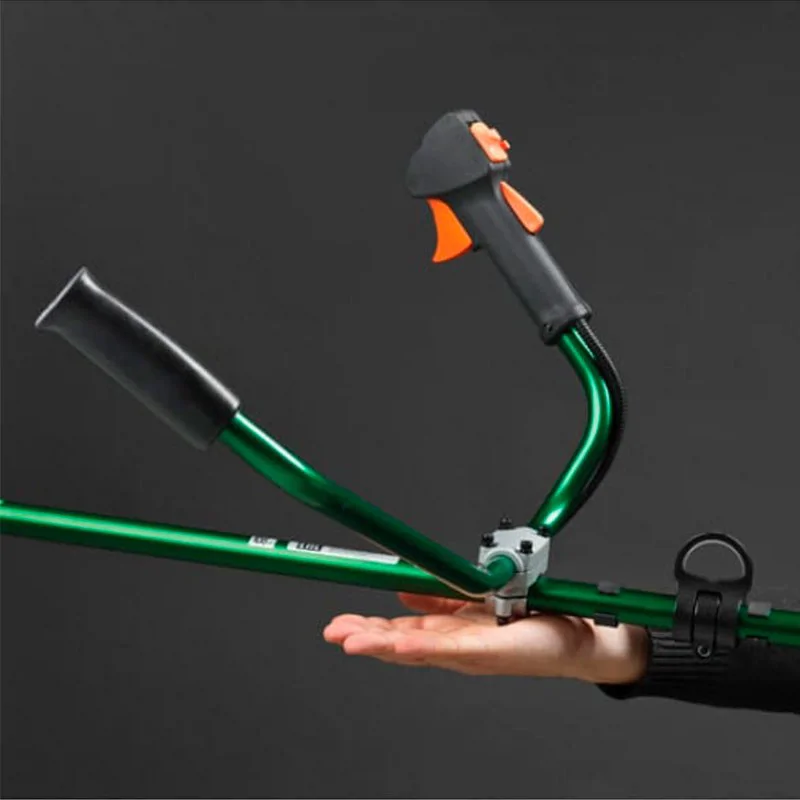 У штанги из алюминия малый вес, она не подвергается коррозии и благодаря установленным внутри бронзовым подшипникам практически не вибрирует во время работы триммера. Левая и правая части рукоятки регулируются независимо друг от друга под любое положение рук.