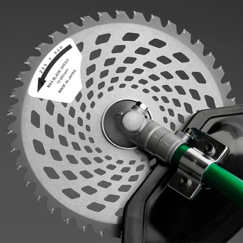 - В комплекте триммерная насадка с леской диаметром 2,4 мм и стальной диск для травы с победитовыми зубьями диаметром 255 мм.
