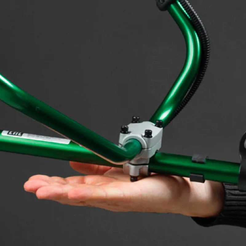 - Универсальная рукоятка управления. Позволяет контролировать число оборотов двигателя, исключает случайное нажатие на курок газа, в экстренных случаях позволяет моментально заглушить двигатель.