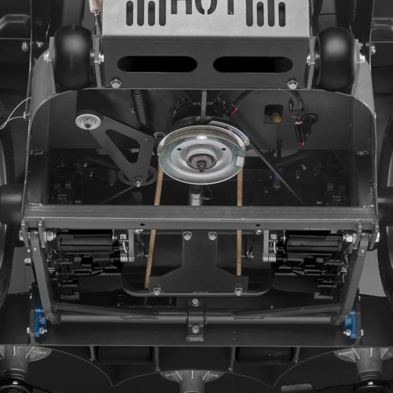 Профессиональная гидростатическая трансмиссия Hydro-Gear ZT-3400® Трансмиссия с плавным изменением передаточного отношения позволяет наиболее эффективно использовать крутящий момент двигателя, по сравнению со ступенчатыми приводами. Электромагнитная муфта сцепления с автоматическим управлением включается также плавно, без использования педали сцепления и износа пар трения.