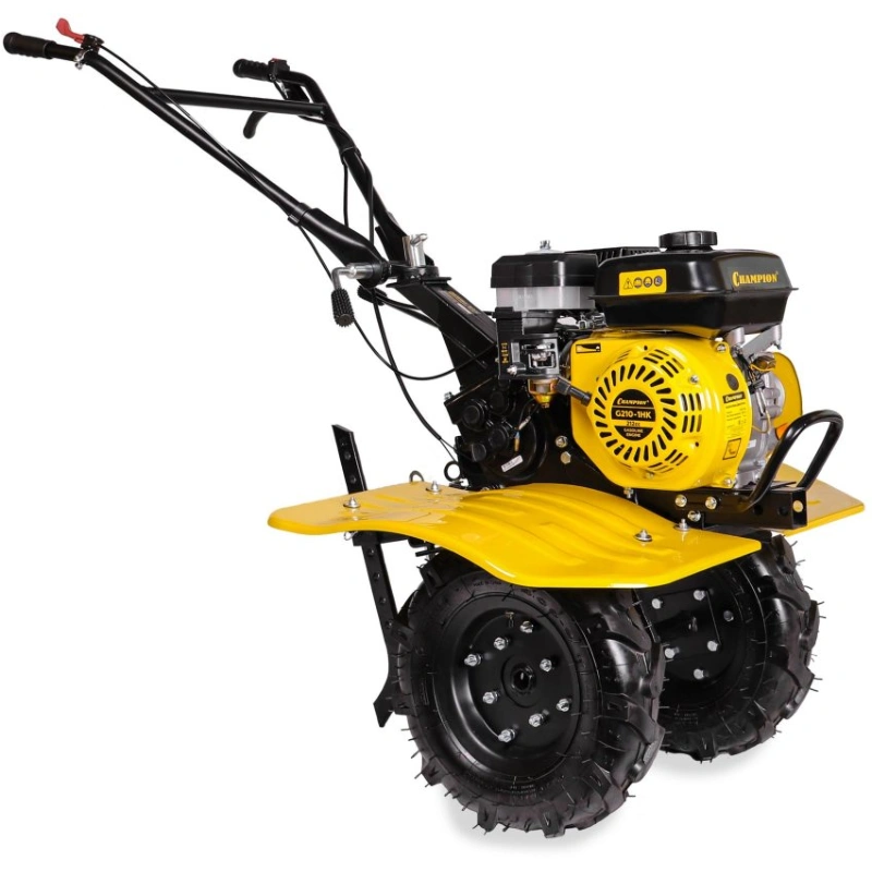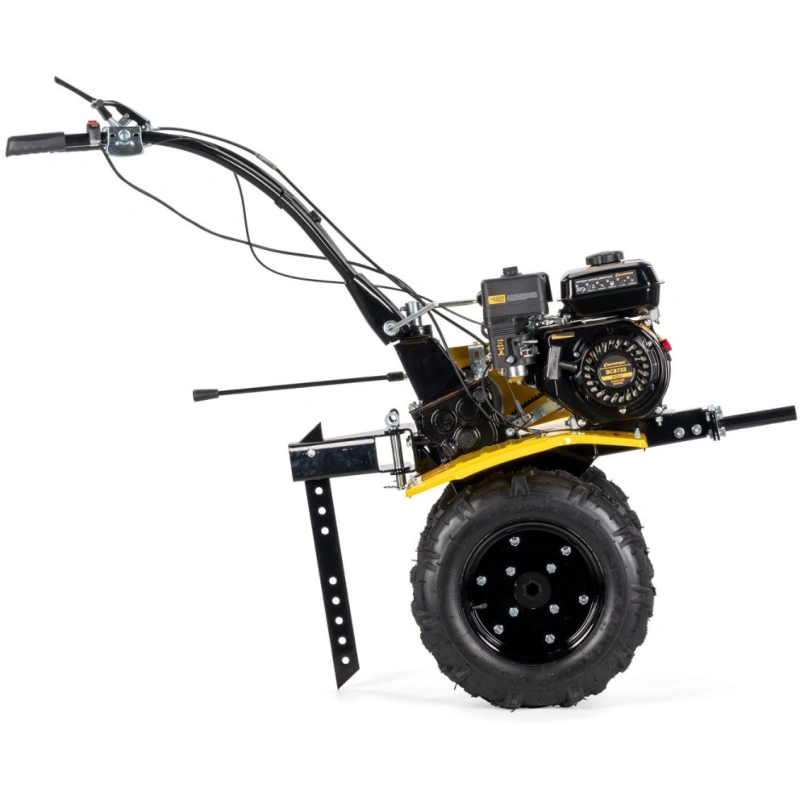 Мотоблок CHAMPION BC8733 представляет собой надежное и мощное устройство, предназначенное для обработки больших участков земли. Оснащенный бензиновым двигателем G210-26HK мощностью 7 лошадиных сил, он обеспечивает эффективную работу на площади более 20 соток. Шестеренчато-цепной редуктор и ременное сцепление гарантируют плавность и надежность в эксплуатации. Ширина вспашки достигает 81 см, а глубина - 35 см, что позволяет быстро и качественно обрабатывать почву. Две скорости вперед и одна назад обеспечивают удобство маневрирования. С колесами диаметром 4.00-10 см мотоблок легко преодолевает неровности. Емкость топливного бака составляет 3,6 литра, что позволяет работать длительное время без дозаправки. Комплектация включает плуг, картофелекопалку и косилку, что расширяет функциональные возможности устройства.