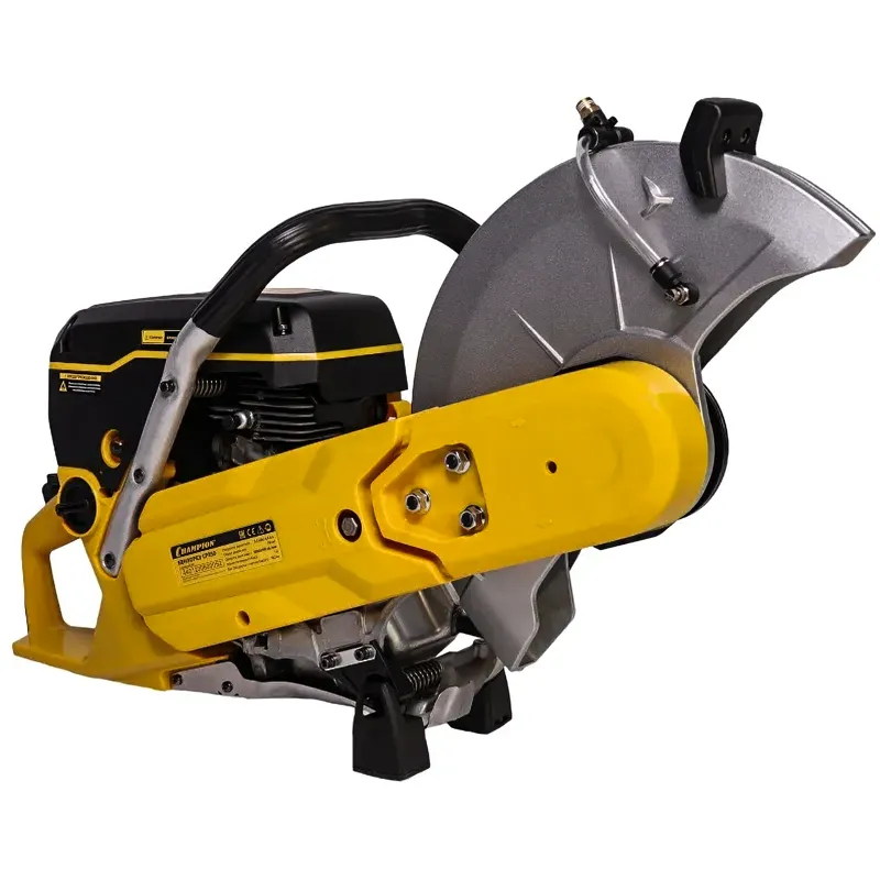 Для предотвращения случайного запуска резчика CHAMPION CP350 во время его хранения или транспортировки предусмотрен рычаг блокировки газа. Положение защитного кожуха отрезного диска настраивается вручную при помощи отдельного рычага. Это также повышает безопасность, еслиу неквалифицированного персонала окажется доступ к инструменту.